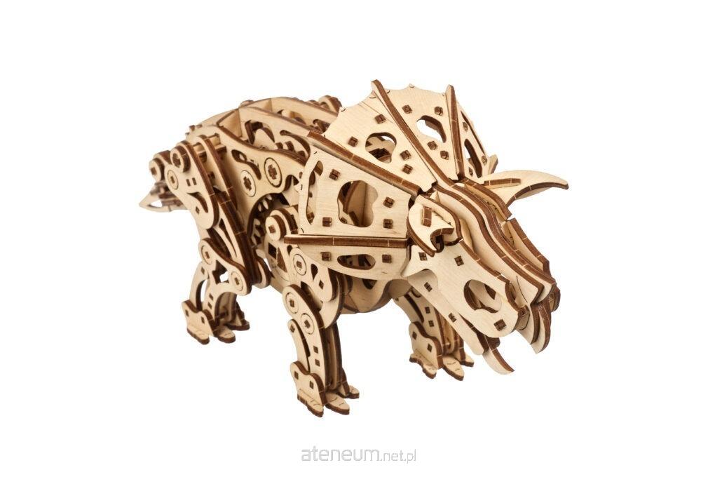UGEARS dodaje nową bestię do swojej kolekcji automatów dinozaurów z Triceratopsem (twarz z trzema rogami), dynamicznym, mechanicznym drewnianym modelem DIY dominującego roślinożercy z okresu późnej kredy. Podobnie jak nasz model Tyrannosaurus Rex, Triceratops jest napędzany metalową sprężyną, która przekazuje moc przez przekładnię redukcyjną, obracając oś napędzającą cztery nogi. Mimośrodowe koło zębate wprawia ogon w ruch synchroniczny z nogami, pomagając dinozaurowi chodzić płynnie, tak jak w naturze.