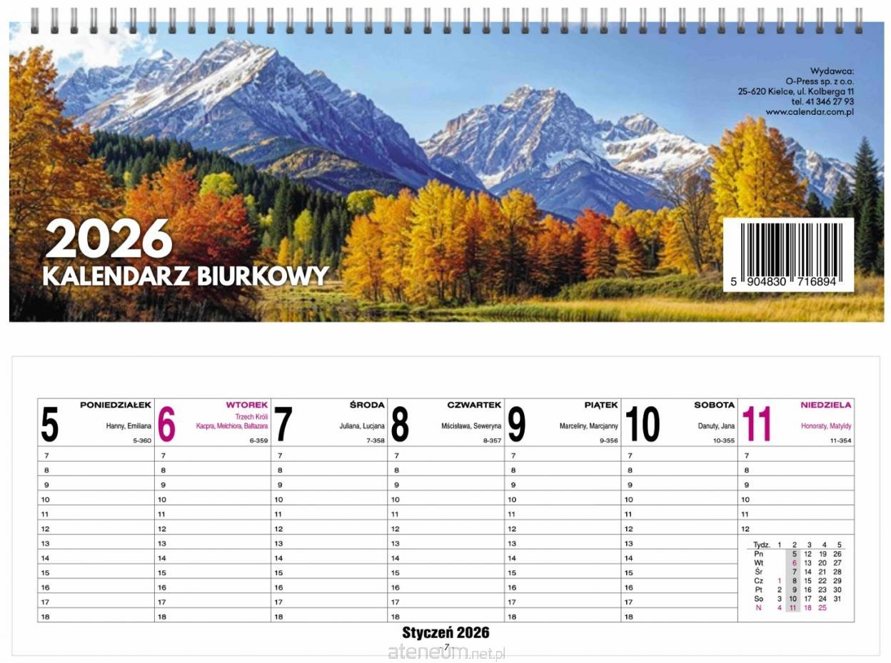 Kalendarz 2026 Biurkowy Tygodniowy 29x10cm