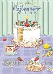 Karnet okolicznościowy z kopertą i życzeniami w środku.