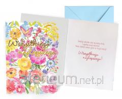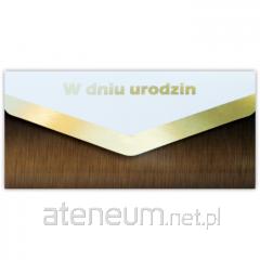 Po złożeniu format kartki DL, wyjątkowe złocenia, w środku życzenia i kieszonka na pieniądze. Dodatkowa koperta