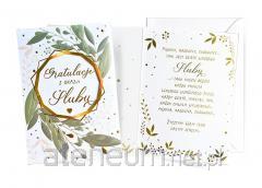 Po złożeniu format kartki DL, wyjątkowe złocenia, w środku życzenia i kieszonka na pieniądze. Dodatkowa koperta