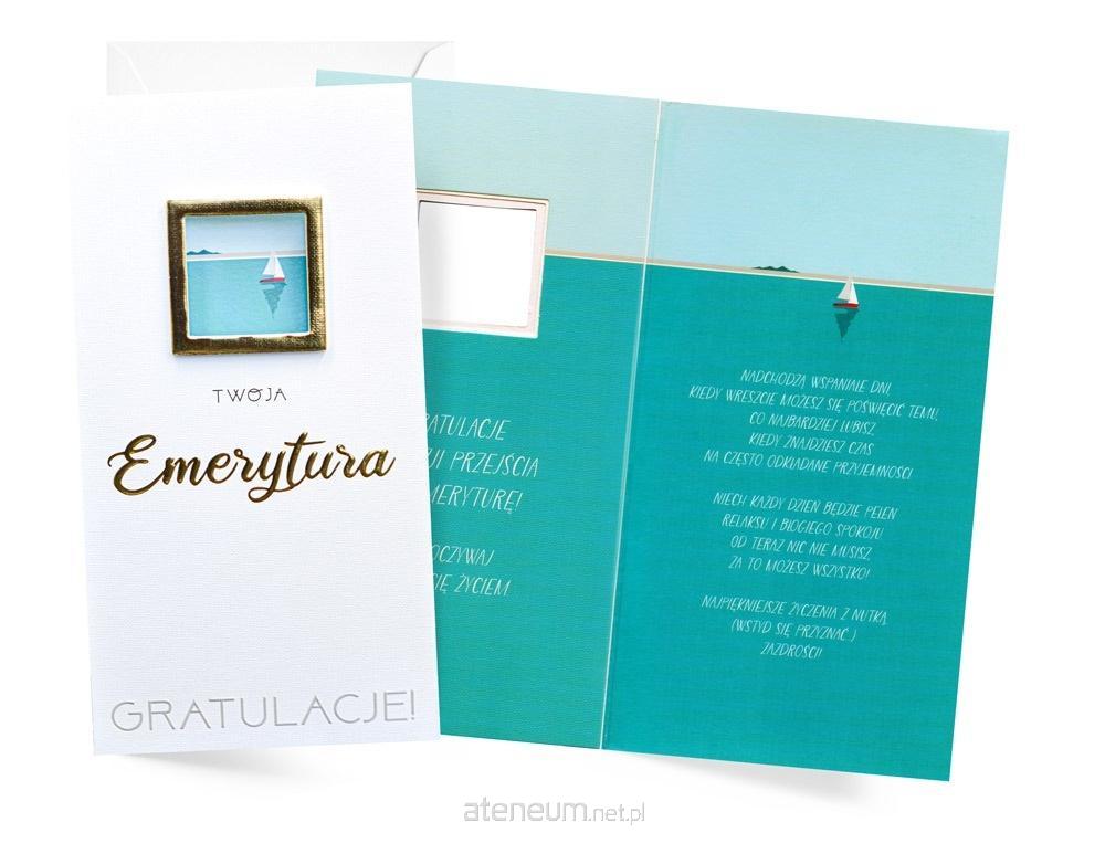 Kartka z okazji Emerytury z serii Passion Moments PM-409 Każda kartka w kolekcji Passion Moments to małe arcydzieło - wyjątkowe i niepowtarzalne, piękne wizualnie. Kartki PM są bardzo bogato zdobione, a jednocześnie skromne i stylowe, cały efekt tkwi w detalach i doskonałym wykonaniu. W zależności od wzoru, na kartkach znajdują się dekoracje ze złotej, srebrnej, perłowej lub holograficznej folii, a także doklejki biżuteryjne, kokardki, laserowe wycięcia, wstążeczki i inne dodatki. Wnętrze karnetu to zawsze atrakcyjna grafika i tekst życzeń. Kartki mają w komplecie dopasowaną kopertę. Cechy szczególne: zdobienie: przynajmniej dwie folie (metaliczne/perłowe/holograficzne), elementy doklejane, wycięcia laserowe, wstążeczki - w zależności od wzoru, wnętrze: z delikatną grafiką, wyjątkowe życzenia w środku, w komplecie: dopasowana kolorystycznie koperta, wymiary karnetu po złożeniu: 11,4 x 21,5 cm.