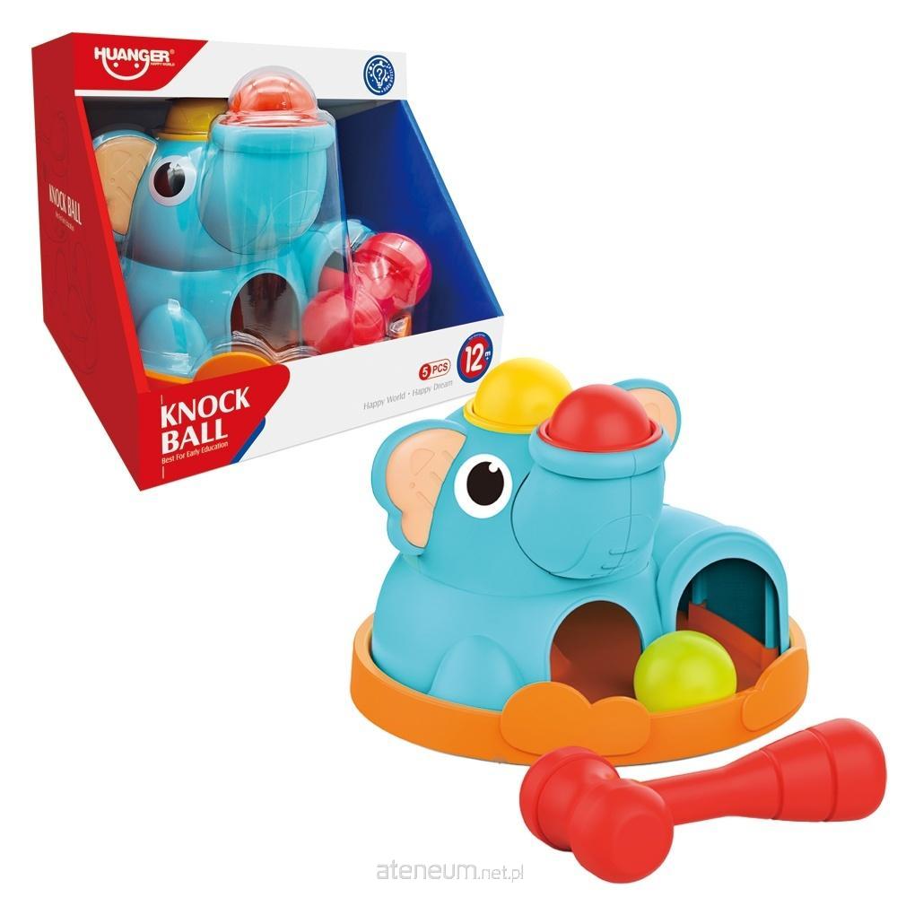 Słonik - zbijak z piłeczkami W zestawie 3 piłeczki i młotek Wymiary produktu: 20.5 x 14.2 x 20.5 cm, młoteczek 16.5 x 8.5 x 4.5 cm Wymiary opakowania: 21 x 21 x 18.5 cm Wiek 12m+