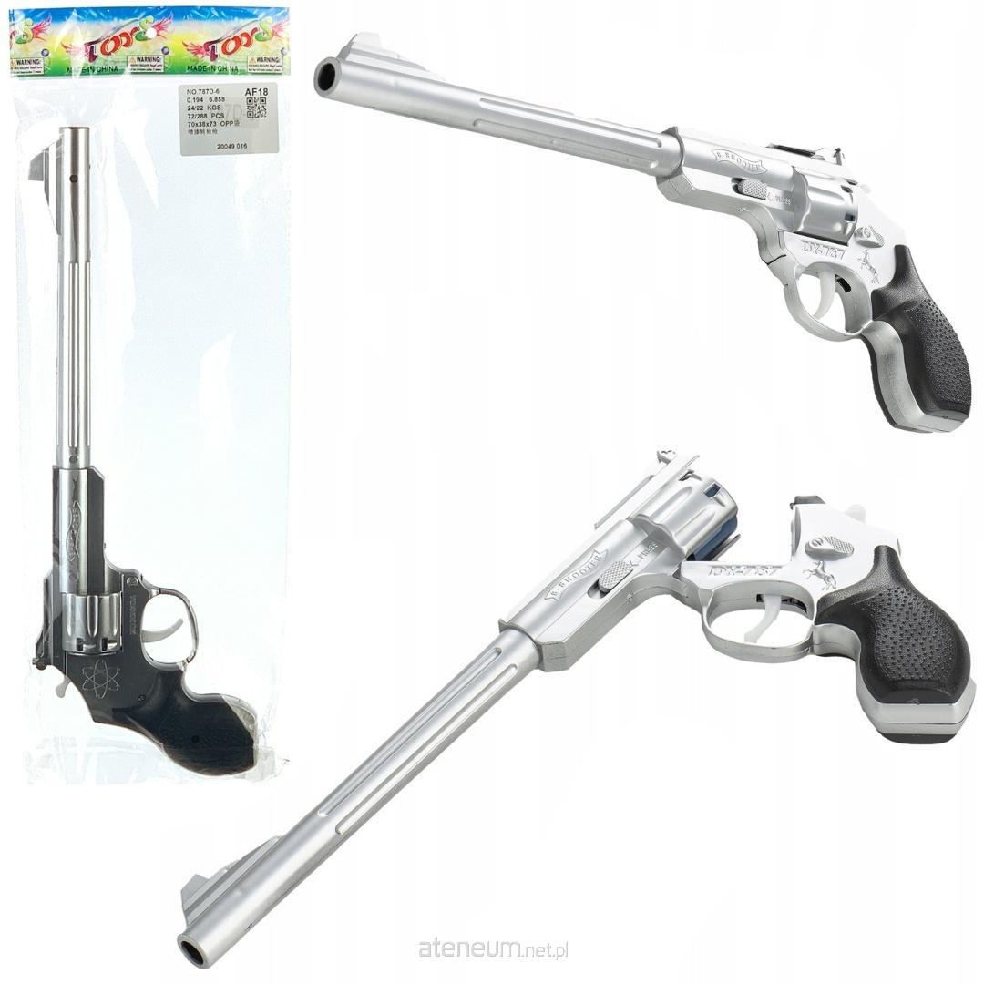Rewolwer "AF-1B" z Długą Lufą - Realistyczna Zabawka Westernowa/Policyjna (Srebrny/Czarny) na kapiszony Wkrocz do świata dzikiego zachodu lub ekscytujących policyjnych pościgów z naszym realistycznym rewolwerem "AF-1B" o imponująco długiej lufie! Ta starannie wykonana zabawka to idealna propozycja dla dzieci, które uwielbiają odgrywać role i tworzyć własne, pełne akcji scenariusze. Dostępny w klasycznym srebrnym kolorze z czarną rękojeścią, z pewnością wyróżni się w każdej kolekcji zabawek. Realistyczny Design i Imponujące Wymiary: Rewolwer został zaprojektowany z dbałością o szczegóły, wiernie odwzorowując wygląd prawdziwej broni z długą lufą, co nadaje mu charakterystyczny wygląd rewolweru snajperskiego lub westernowego. Wykonany z solidnego tworzywa sztucznego, imitującego metal, zapewnia trwałość i odporność na intensywną zabawę. Antypoślizgowa, czarna rękojeść z fakturą zapewnia pewny chwyt, a widoczne elementy, takie jak bębenek i spust, dodają autentyczności. Na korpusie widnieje napis "AF-1B" oraz "Guangdong China". Bezpieczna Zabawa w Odgrywanie Ról: Ten zabawkowy rewolwer jest bezpieczny w użytkowaniu i przeznaczony do zabawy w odgrywanie ról. Nie strzela pociskami, co eliminuje ryzyko związane z niebezpiecznymi przedmiotami. Dzieci mogą bez obaw wcielać się w postacie szeryfów, kowbojów, agentów specjalnych czy policjantów, rozwijając swoją kreatywność i umiejętności społeczne poprzez interakcję z innymi. Rewolwer można załadować kapiszonami (brak w zestawie) Rozwój Wyobraźni i Ról: Zabawa rewolwerem to doskonały sposób na: Rozwijanie wyobraźni i kreatywności: Dzieci mogą tworzyć własne historie, scenariusze i dialogi. Wspieranie umiejętności społecznych: Idealna do zabawy z rówieśnikami w "policjantów i złodziei" czy "kowbojów". Rozwijanie zdolności narracyjnych: Układanie fabuły i odgrywanie różnych postaci. Idealny Prezent: Rewolwer "AF-1B" to świetny prezent dla każdego dziecka, które uwielbia zabawę w odgrywanie ról, przygody i akcję. Doskonały na urodziny, święta czy inną okazję. Specyfikacje (dla pojedynczego rewolweru): Wymiary: 40x14x9cm Materiał: Wysokiej jakości tworzywo sztuczne z imitacją metalicznego wykończenia. Kolory: Srebrny z czarną rękojeścią (jak na zdjęciu). Zawartość Zestawu: 1x Zabawkowy rewolwer. (Sprzedawane w opakowaniach blistrowych, jak na zdjęciu, więc można zakupić pojedynczą sztukę). Zalecany Wiek: Od 3 lat (jak sugeruje oznaczenie na opakowaniu).