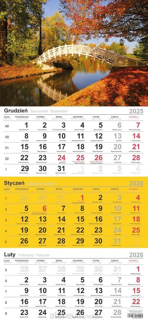 układ kalendarium: 3 miesiące - 1 kartka