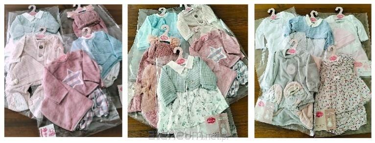 Pakiet ubranek dla lalki 42 cm 5 szt. Antonio Juan 91042 Zestaw strojów dla lalek - bobasów o wysokości 42 cm marki Antonio Juan zawiera 5 sztuk losowo wybranych ubranek (mix). Staramy się zachować różnorodność kolorystyki i fasonów. Mogą to być np.: sukienka, sukienka z bolerkiem lub krótkimi spodenkami, bluza lub body z półśpiochami lub krótkimi spodenkami, body lub body z czapeczką, piżamka, kostium dla lalki. Stylowe ubranka, szyte ręcznie z wysokiej jakości tkanin, są umieszczone na tekturowych wieszaczkach z logo marki Antonio Juan i zapakowane w foliowe opakowania.
