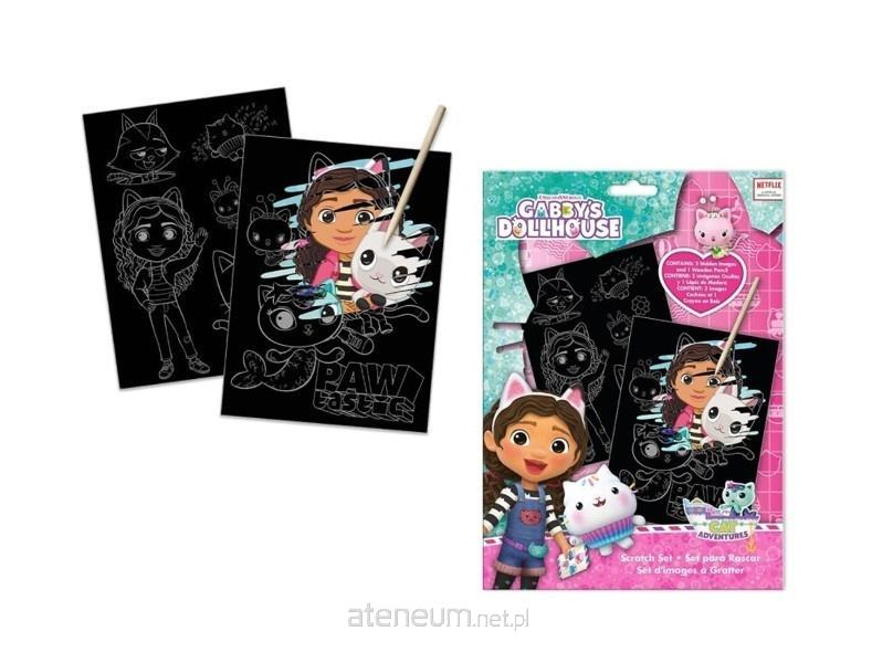 Zestaw kreatywny z ulubionymi bohaterami serialu Gabby's Dollhouse. Zawartość: 2 obrazki do wydrapywania, patyczek.