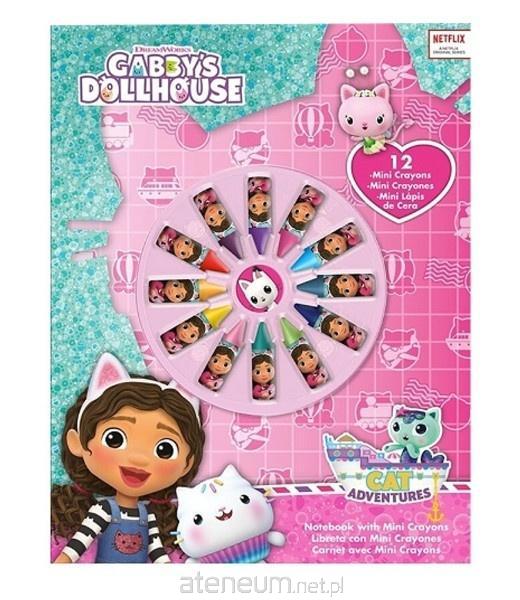 Zestaw do kolorowania z motywem Gabby's Dollhouse. Zawartość: 12 arkuszy do kolorowania, 12 mini kredek.