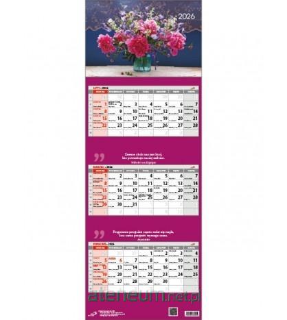 Atut tego kalendarza to czytelny, przejrzysty wygląd, dzięki któremu bez trudu odnajdziesz każdy ważny termin. Trójdzielny układ daje wgląd w trzy następujące po sobie miesiące bez konieczności przekładania stron, ułatwiając planowanie dni i tygodni. Kalendarz posiada pasek z okienkiem do zaznaczania bieżącej daty oraz otwór ułatwiający zamocowanie kalendarza.