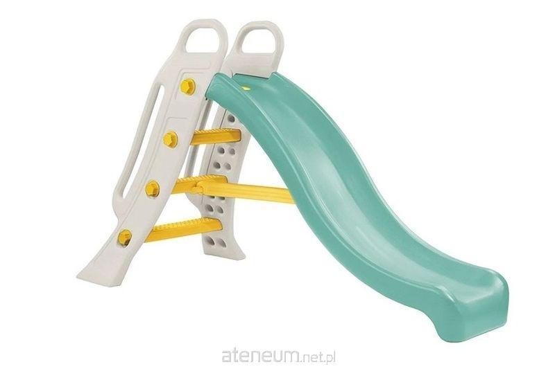 Zjeżdżalnia posiada stabilne schodki z szerokimi stopniami, poręcze ułatwiające wspinanie się oraz długi, łagodny ślizg, który można podłączyć do węża ogrodowego, aby uzyskać efekt ślizgu wodnego. Produkt został wykonany z trwałego, odpornego na warunki atmosferyczne plastiku idealnego do ogrodu, na działkę lub taras.