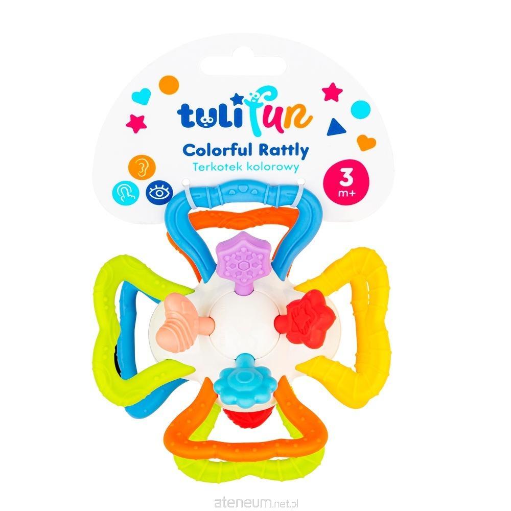 Ta niepozorna zabaweczka zapewni wesołą rozrywkę z terkotaniem w roli głównej! Poza miękkimi, nafaszerowanymi wypustkami, uchwytami, pełniącymi zarazem funkcję gryzaków, znajdują się tu miękkie kształty, także z wypustkami, które podczas gryzienia, przyniosą ulgę obolałym dziąsłom ząbkującego maluszka. Przy przekręcaniu połówek zabawki w odwrotnych kierunkach względem siebie, wydaje ona zabawny, miły dla ucha odgłos.