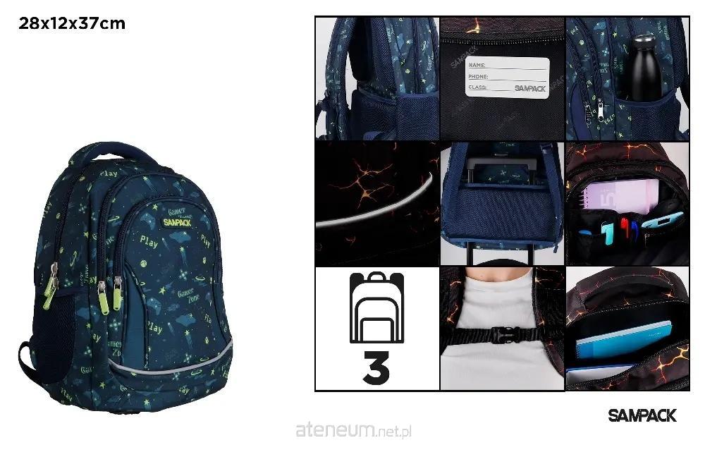 Plecak trzykomorowy Play granatowy 28x12x37cm