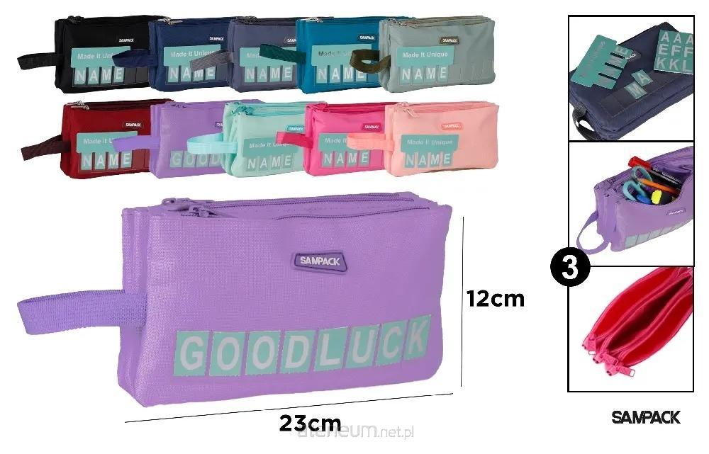 Piórnik trzykomorowy z uchwytem i literkami do podpisania mix kolorów