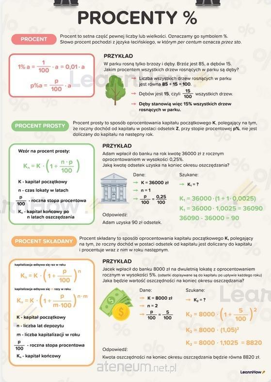 Świetny sposób na przypomnienie definicji i przykładów rodzajów procentów.