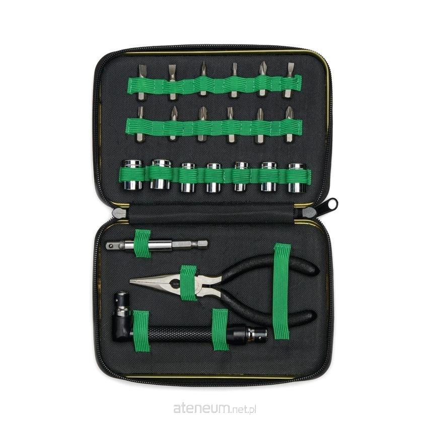 Ten kompaktowy zestaw narzędzi wykona zadanie dzięki 19-częściowemu zestawowi mini bitów/nasadek oraz parze szczypiec z wąskimi końcówkami.