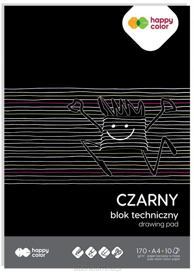 Blok techniczny czarny szkolny sztywny A4 HAPPY COLOR 170 g/m2 10 kartek