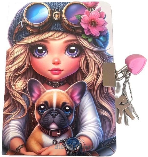 Pamiętnik z kłódką A6 N9858 Dziewczynka z pieskiem 64 stron gładki