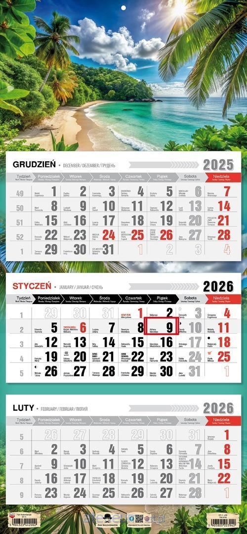 Kalendarz 2026 trójdzielny płaska główka tropiki