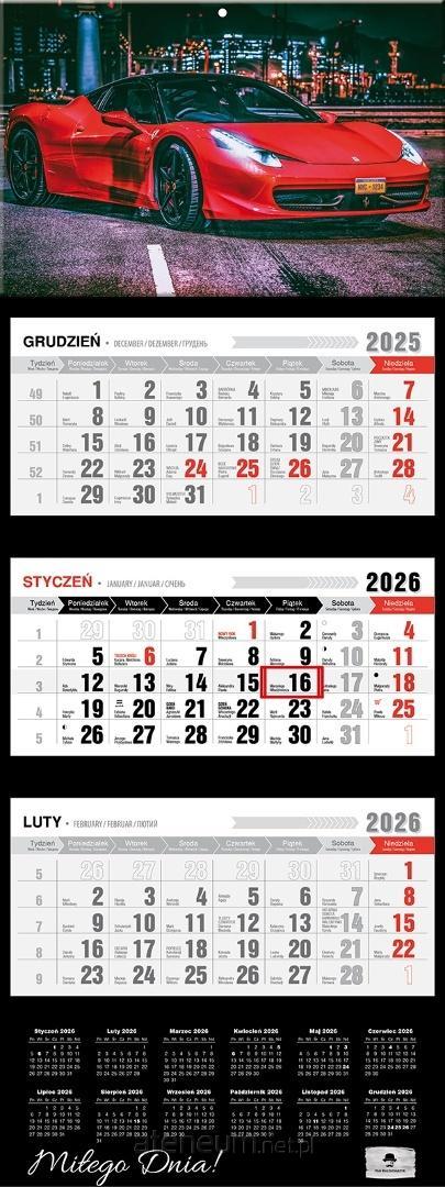 Kalendarz 2026 Trójdzielny PREMIUM Z WYPUKŁĄ GŁÓWKĄ. Format 315/810mm. Trzy komplety klasycznych kalendariów z przesuwnym okienkiem. Główka wypukła z otworem wierconym. Dodatkowo nazwy miesiąca i dni tygodnia w języku Ukraińskim, Angielskim i Niemieckim. Kalendarium dodatkowo zawiera fazy księżyca i znaki zodiaku. Dużo miejsca do notowania, czytelne duże litery i cyfry. DODATKOWO PRZEDŁUŻONE PLECKI KOLOREM DOPASOWANE DO WZORU ZE SKRÓCONYM KALENDARIUM NA ROK 2026. Nowoczesne i klasyczne wzornictwo, dopracowane wzory, czytelne kalendarium. Praktyczny i elegancki kalendarz który sprawdzi się zarówno w domu, biurze jak i innych pomieszczeniach.