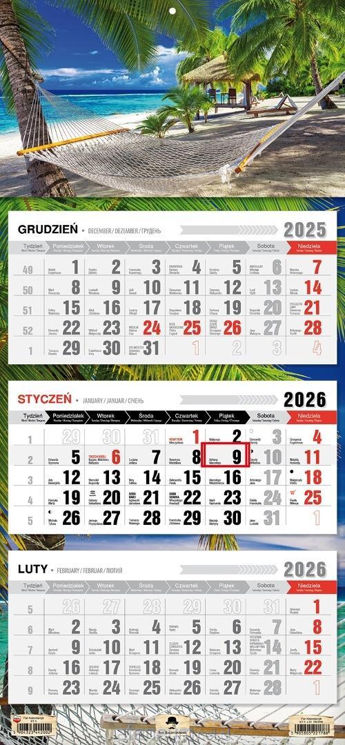 Kalendarz 2026 trójdzielny płaska główka tropik