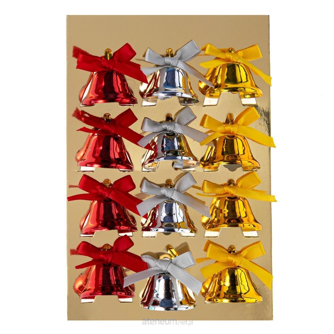 Metalowe dzwonki z kokardką 12 szt złote, srebrne, czerwone