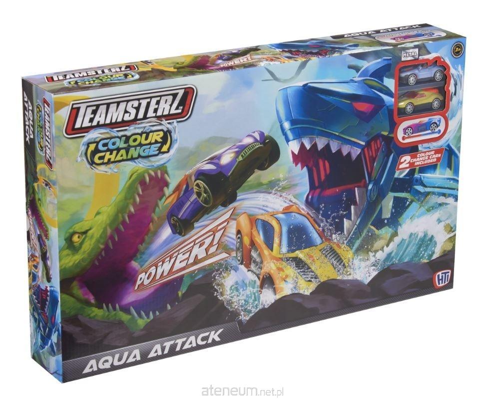 Pędź po torze, okrąż pętlę i przejedź przez szczęki rekina, zanim wylądujesz w wodzie, która zmienia kolor samochodu, ale uważaj - po drugiej stronie czai się ogromny krokodyl! Samochody pokryte są specjalnym lakierem, który po zanurzeniu w ciepłej/zimnej wodzie powoduje zmianę koloru! To idealny produkt dla każdego zapalonego małego kierowcy, który oferuje godziny pomysłowej zabawy. Zabawka wspomaga rozwój i zdolności motoryczne dziecka. W zestawie znajduje się 1 rekin, 1 krokodyl, 1 rampa, pojemnik na wodę oraz 2 auta.