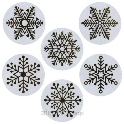 Naklejki foliowe na taśmie 6 wzorów płatki śniegu złote O25mm 500szt.