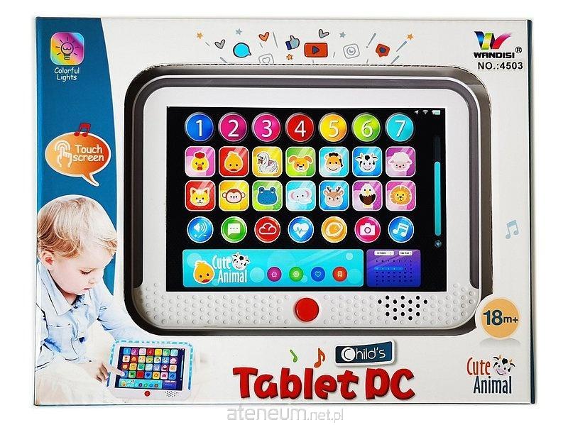 tablet edukacyjny na baterie, ekran dotykowy, zwierzątka i liczby, angielski, światło, dźwięk; 19x13,5x2cm, Box