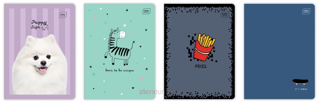 Format: A5. Liczba kartek: 16. Zadruk w kolorową kratkę. Zaokrąglone rogi. Okładka pokryta lakierem UV. Przydatne pomoce dydaktyczne na odwrocie zeszytu: ściąga z języka angielskiego i tabliczka mnożenia.