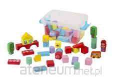 W środku znajduje się kilkanaście klocków zapakowanych w poręczne sześcienne pudełko, które swoim kształtem nawiązuje do klasycznego klocka KOOGLO - drewnianej kostki.