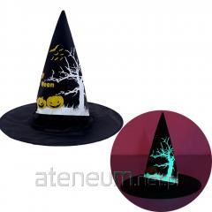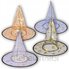 Stylowy kapelusz czarownicy z szerokim, transparentnym rondem i dekoracyjnym nadrukiem to idealny dodatek do halloweenowych przebieranek. Kapelusz wykonany jest z lekkiego, lekko usztywnianego materiału na rondzie, dzięki czemu zachowuje kształt i dobrze prezentuje się na głowie.