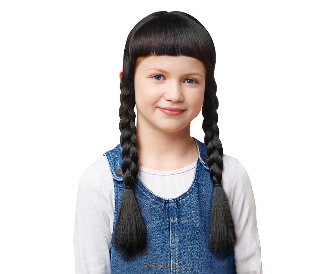 PERUKA CZARNE WARKOCZE Z GRZYWKĄ