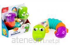 Słodziak na kółkach bawi dźwiękiem i światełkami! Jeżyk ze sznureczkiem do prowadzenia rączką, posiada na boku dwa aktywne przyciski, w kształcie grzybka i jabłuszka, które po naciśnięciu świecą, a także aktywują melodie oraz edukacyjne piosenki. Na drugim boku jeżyka znajduje się motylek, który podczas przesuwania zabawnie terkocze. Zwierzak wyposażony został w praktyczny przełącznik ON/OFF, umożliwiający wyłączenie jeżyka po zakończonej zabawie.