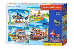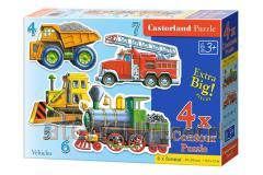 Puzzle dla najmłodszych, składające się z czterech oddzielnych obrazków o zróżnicowanym stopniu trudności. Żywe kolory, odpowiednio dobrane wzornictwo oraz duże elementy sprawią, że małe dziecko z łatwością ułoży każdy obrazek. Puzzle te zapraszają do poznania fascynującego świata bajek, zwierząt i motoryzacji. Pomogą rozwinąć zdolność kojarzenia oraz zwiększyć sprawność manualną. Wiek 4+