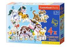 Puzzle dla najmłodszych, składające się z czterech oddzielnych obrazków o zróżnicowanym stopniu trudności. Żywe kolory, odpowiednio dobrane wzornictwo oraz duże elementy sprawią, że małe dziecko z łatwością ułoży każdy obrazek. Puzzle te zapraszają do poznania fascynującego świata bajek, zwierząt i motoryzacji. Pomogą rozwinąć zdolność kojarzenia oraz zwiększyć sprawność manualną. Wiek 4+