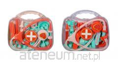 Kompleksowy zestaw: W zestawie znajduje się wiele realistycznych (lecz bezpiecznych!) narzędzi lekarskich, w tym stetoskop, termometr, strzykawka, młoteczek neurologiczny, nożyczki, lusterko laryngologiczne, buteleczka na lekarstwa, okulary i tacka.
