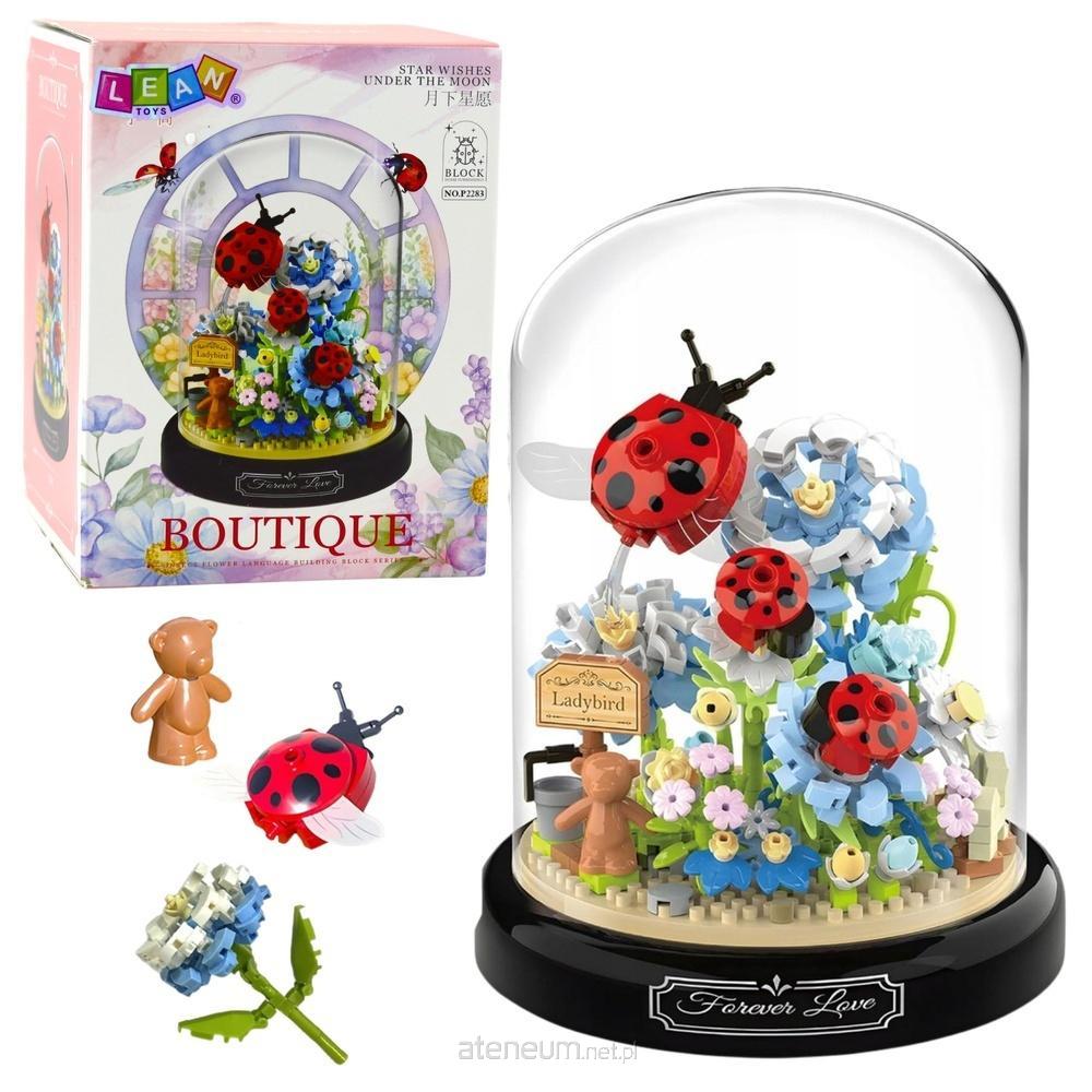 Klocki konstrukcyjne Bukiet Kwiatów to niezwykle kreatywny zestaw, który pozwala stworzyć zachwycającą kompozycję florystyczną zamkniętą w eleganckiej przezroczystej kopule. W zestawie znajduje się aż 596 elementów, dzięki którym można zbudować efektowną dekorację przedstawiającą bukiet kwiatów z realistycznymi owadami - między innymi biedronkami, które dodają uroku całości.