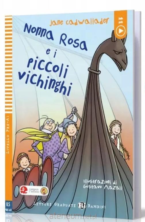 Nonna Rosa e i piccoli vichinghi - bajka po włosku dla dzieci - uproszczona językowo lektura z serii Letture Graduate ELI Bambini do nauki języka włoskiego z nagraniem audio online.Przeznaczenie: Książka dla dzieci w wieku wczesnoszkolnym i szkolnym, do wykorzystania w domu i w klasie.Poziom zaawansowania 1: A1 (początkujący) 100 słów.Treść: Grupa dzieci podczas wycieczki niespodziewanie spotyka małych wikingów. Z pomocą Babci Rosy udaje im się uratować młodego wieloryba, który ugrzązł na plaży.Kluczowe zagadnienia językowe:La spiaggia, giochi e giocattoli, animali del mare, presentarsi, invitare, dare e capire un ordineStruktura książki:Tekst książeczki uzupełnia pięć stron z różnego rodzaju zabawnymi kolorowymi ćwiczeniami nawiązującymi do treści lekturki. Książka zawiera rozkładane okładki zawierające ilustrowane glosariusze ze słówkami występującymi w treści opowiadania oraz praktyczną zakładkę do wycięcia. Bogata szata graficzna stanowi doskonały komentarz wizualny do przedstawionej historii i sprzyja lepszemu zrozumieniu słownictwa i wyrażeń znajdujących się w tekście.Książka stanowi doskonałe narzędzie konsolidujące kompetencje i sprawności językowe dziecka obejmujące umiejętność czytania, rozumienia ze słuchu, pisania i mówienia.Nagranie audio mp3: Uzupełnieniem lektury jest materiał audio zawierający nagranie tekstu oraz piosenek. Materiały dostępne są online do pobrania ze strony www lub za pośrednictwem darmowej aplikacji EliLink.Czytaj, graj i ucz się włoskiego! Bohaterkę tej lektury - Babcię Rosę czytelnicy mogą spotkać ponadto w grze językowej Il domino della giornata, dzięki czemu płynnie przejdą od czytania historii w języku włoskim do nauki za pomocą gier dydaktycznych. Dzięki temu połączeniu dzieci sięgając po gry językowe lub w drugą stronę - po lektury językowe - napotykają znajome postaci, co znacznie ułatwia im oswojenie się z nowym materiałem i nowymi sposobami nauki.