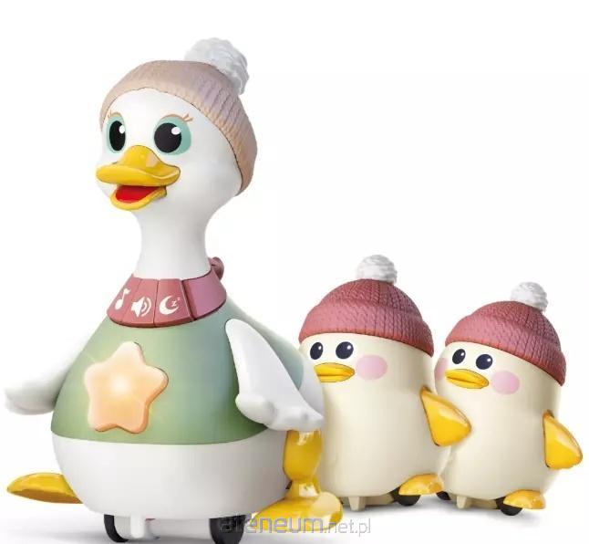 Kwa-kwa, a któż to nadciąga? To kacza rodzinka, mamusia i jej dwa urocze maluchy! Ta zgrana ekipa wesoło podąża przed siebie, przy dźwiękach miłych dla ucha piosenek. Kaczuszki łączą się ze sobą, jeżdżąc jedna za drugą gęsiego, ale potrafią poruszać się także w pojedynkę. Dodatkowo, małe kaczuszki można połączyć ze sobą skrzydełkami, aby tańczyły, kręcąc się naokoło lub grzecznie spacerowały w parze. Kacza mama wyposażona została w świecącą gwiazdkę na brzuszku oraz dwa przyciski, aktywujące melodie oraz trzeci, środkowy, służący regulacji głośności. Duża kaczka działa w trybie dynamicznym, opisanym wyżej, oraz w trybie statycznym, który przekształca ją w lampkę nocną, odtwarzającą kołysanki.