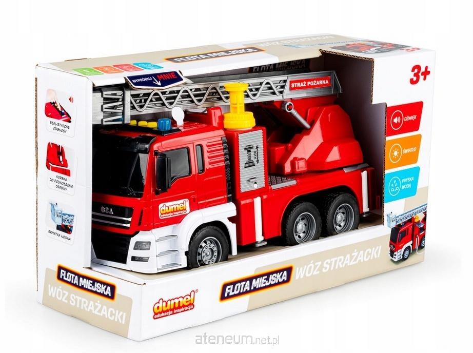 Hej, mały strażaku, gotów do akcji? Z zabawkowym Wozem Strażackim przeżyjesz wspaniałą przygodę, pełną sensorycznych niespodzianek! Pojazd wyposażony został w najprawdziwszy zbiornik na wodę wraz z wężykiem i armatką wodną, pozwalającą na pryskanie wodą! Dodatkowo, znajdziemy tu ruchome elementy korbkę do podnoszenia drabiny oraz ręcznie rozsuwaną drabinę. Wóz strażacki posiada także aktywne przyciski na dachu, aktywujące realistyczne odgłosy i światełka. Dodatkowo, gdy rozpędzisz koła pojazdu, poprzez tarcie nimi o podłoże, pojazd pojedzie sam do przodu!