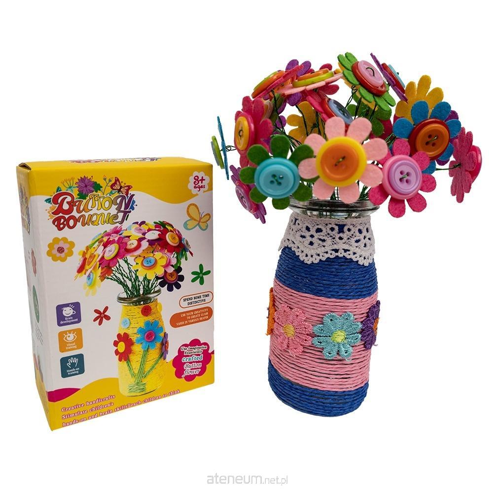 Dzięki kolorowym guziczkom, filcowym kwiatuszkom i drucikom dziecko może zaprojektować swój własny, niepowtarzalny bukiet. Gotowe kwiaty umieszcza w dołączonym wazoniku, który samodzielnie przyozdabia, tworząc piękną dekorację pokoju lub prezent dla bliskiej osoby.