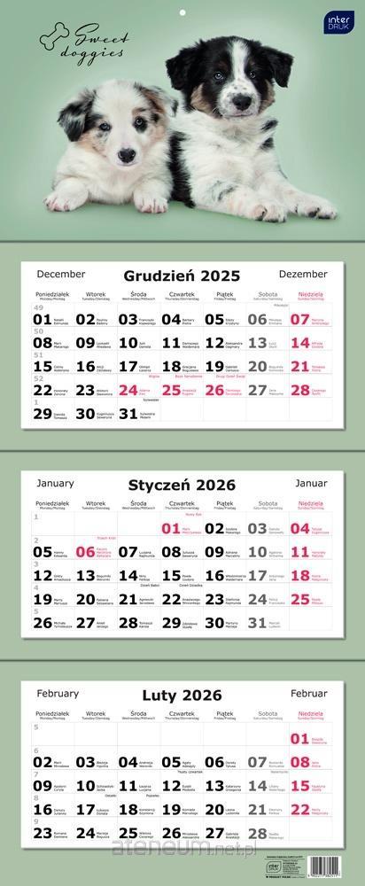 Kalendarz 2026 trójdzielny 82,5x34cm Psy