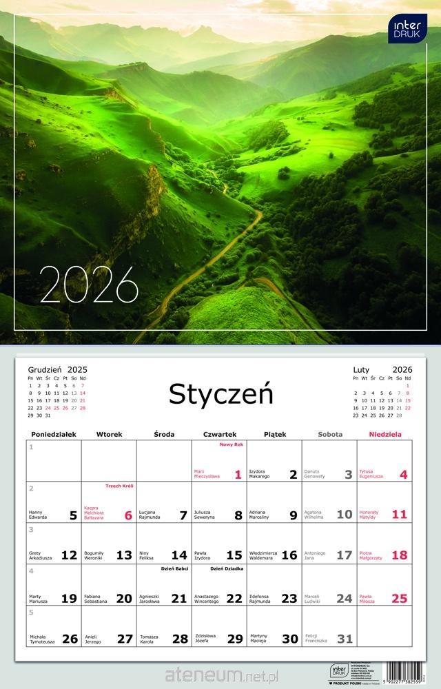 Kalendarz 2026 jednodzielny 32x50cm Widoki