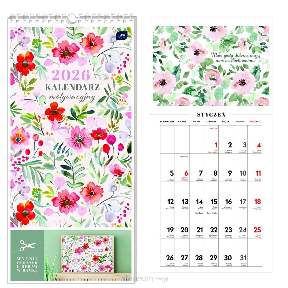 Kalendarz 2026 motywacyjny 22x46cm Kwiaty