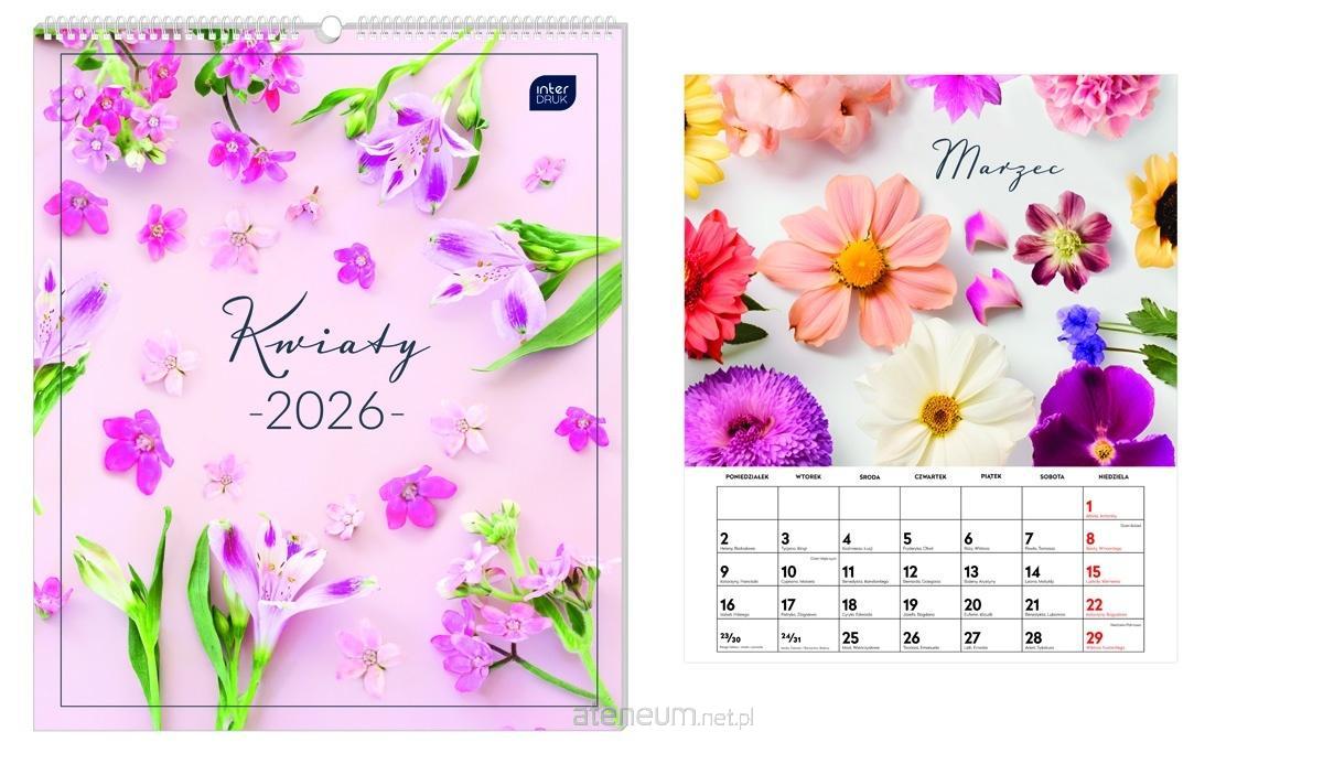 Kalendarz 2026 ścienny planszowy 33,5x40cm Kwiaty