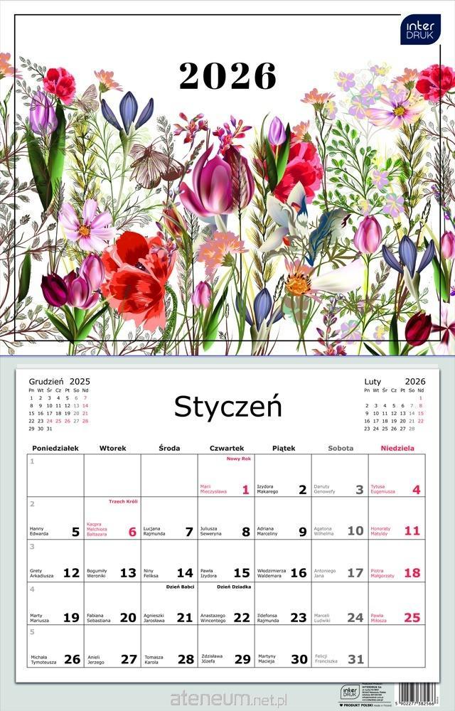 Kalendarz 2026 rodzinny Kwiaty ozdobne