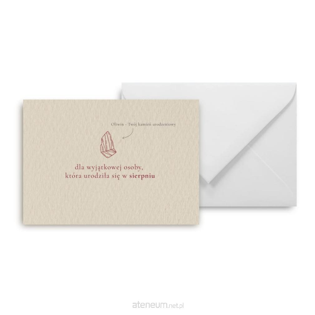 Kartka urodzinowa dla osób urodzonych w sierpniu, ozdobiona symbolem oliwinu. Kamień ten