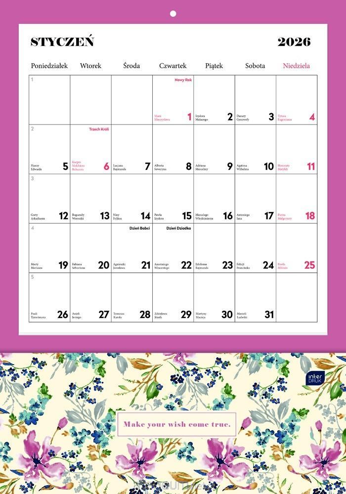 Kalendarz 2026 jednodzielny Kwiaty