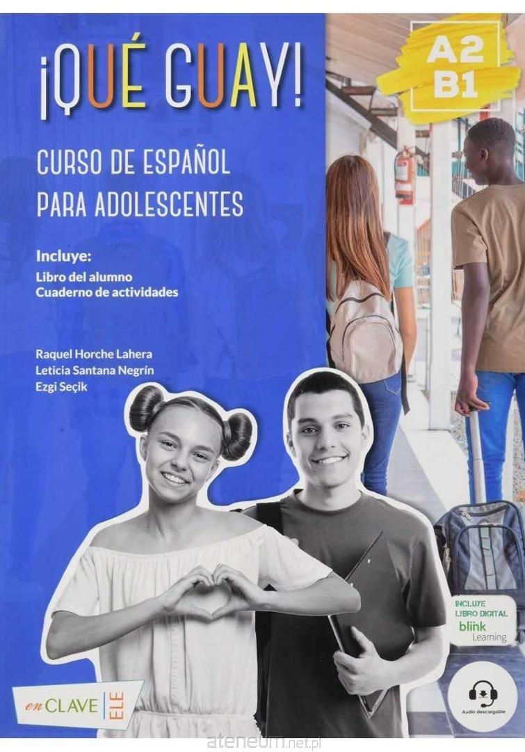 Qu guay A.2.1 -B1. Alumno + Cuaderno de actividades Curso para adolescentes to podręcznik ucznia na poziomie A21-B1, kursu języka hiszpańskiego jako obcego dla nastolatków od 11 roku życia.!Qu guay! jest to kurs uczący komunikacji poprzez działania, w którym praca nad słownictwem i gramatyką odbywa się z perspektywy afektywnej i znaczącej dla ucznia w jasnej i prostej strukturze. Uzupełnieniem rozdziałów są: słownik wizualny znajdujący się na końcu książki, fiszki do drukowania z różnymi poleceniami w zależności od stopnia zaawansowania, różne sekcje powtórkowe, projektowe i przygotowujące do DELE. !Qu guay! Składa się z podręcznika ucznia i zeszytu ćwiczeń w jednym tomie, podręcznika cyfrowego, interaktywnych ćwiczeń cyfrowych, audio do ściągnięcia z platformy wydawnictwa, podręcznika dla nauczyciela i materiałów dodatkowych.