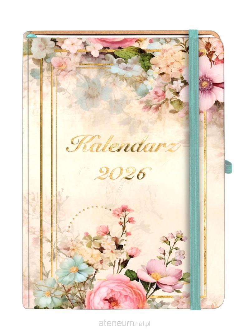 Kolekcja: Botanical , format: A5, wymiary okładki: 144x210 mm, układ: dzień na stronie, ilość stron: 352, oprawa: twarda, materiał: papier, gramatura papieru: 80g, kolor papieru: chamoise, dodatki: plan roku 2026, ważne wydarzenia, skorowidz adresowy, notatki, pionowa gumka zamykająca: tak, wstążka, gumka na długopis: tak, zaokrąglone rogi: tak, wyklejka: czarna, koperta: tak